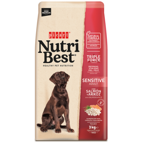 NutriBest lõhe ja riisiga täissööt täiskasvanud koertele.