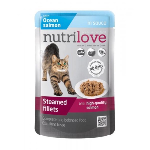 Nutrilove eine steriliseeritud kassidele - aurutatud ookeani lõhefileed kastmes 85 g.